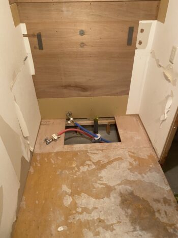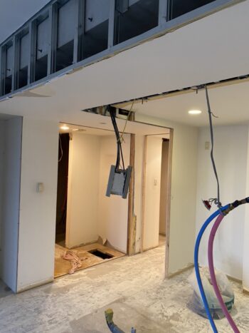 今回の物件はスケルトン工事ではなく、部分解体だったので元請けさんと細かく打ち合わせをして慎重に作業しました。
