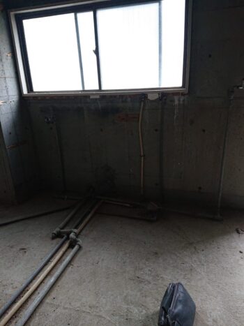 フルリノベーションなので、間仕切り壁、床、天井、水回りなどすべて撤去し、スケルトン状態にしました。